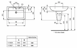 Ideal Standard Contour 21 Waschtisch Unterfahrbar 65 X 55,5 Cm, Mit Hahnloch, Ohne Überlauf