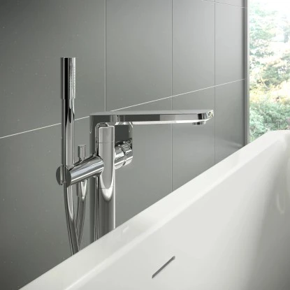 Die Ideal Standard Badearmatur Tonic II ist die Perfektion von Form und Funktion. Alle Bestandteile der Tonic II Komplettbadserie sind perfekt aufeinander abgestimmt. Die sanfte Geometrie der Keramikelemente und Armaturen, Möbel und Badewannen verleiht der neuen Serie einen unverwechselbaren, ästhetischen Look. Mit ihrem raffinierten, soft geometrischen Design und einer klaren Linienführung erzeugt Tonic II eine Stimmung von entspannter Gelassenheit und Ruhe vom hektischen Alltag. Die Wannenarmatur von Ideal Standard verfügt über einen starren Gussauslauf mit Luftsprudler und eine inklusive Stick-Handbrause mit Handbrausehalter. Der Bedienungshebel besteht aus Metall und verfügt über eine permanente Rot- und Blau-Markierung für die Temperatureinstellung.
