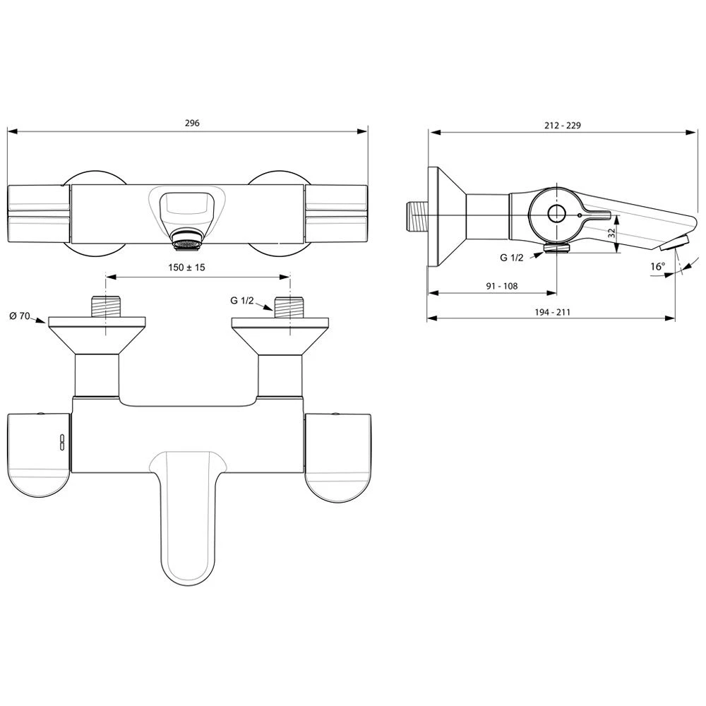 Ideal Standard CeraPlus 2 Wannenthermostat AP mit Desinfektion und Entkopplung und absperrbaren S-Anschlüssen