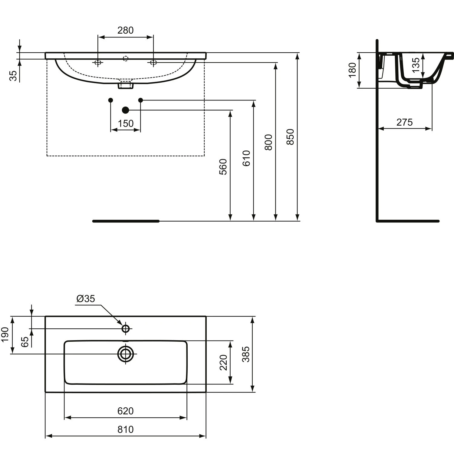 Ideal Standard i.life S Möbelwaschtisch 81 cm, 1 Hahnloch, mit Überlauf