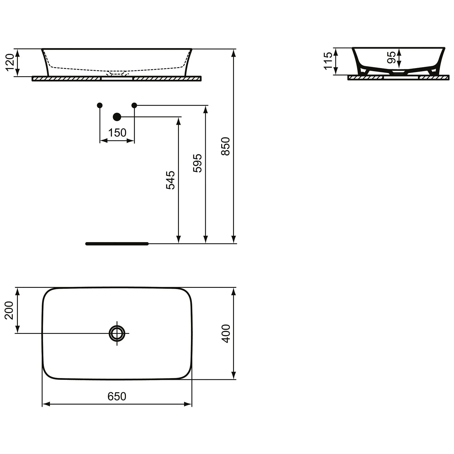 Ideal Standard Ipalyss Aufsatzschale eckig ohne Überlauf, ohne Hahnloch 65 x 40 cm