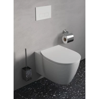 Wandhängend passt sich der Papierrollenhalter ganz Ihren Bedürfnissen an. Das entsprechende Material für die verdeckte Befestigung ist bereits im Lieferumfang enthalten.