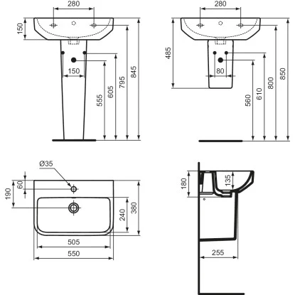 Der wandhängende Waschtisch setzt sich in Szene und ist kombinierbar mit einer Standsäule sowie einer Halbsäule.