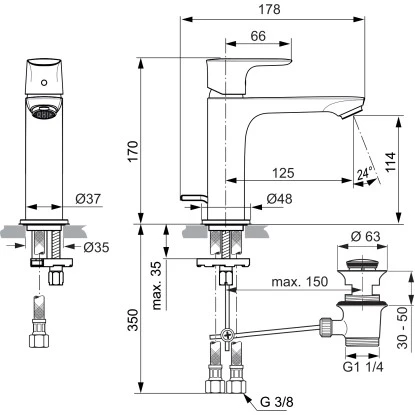 Ideal Standard Waschtischarmatur Connect Air Grande Slim Chrom