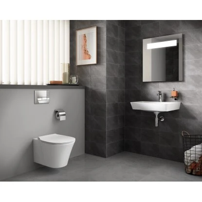 Der Ideal Standard WC-Sitz aus der Serie Connect Air bringt mit einer Leichtigkeit eine zeitlose und filigrane Eleganz in Ihr Zuhause.